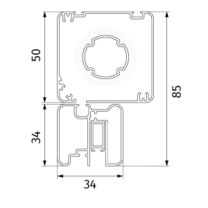 Profil mural complet pour version motorisée (guide téléscopique + compensateur):